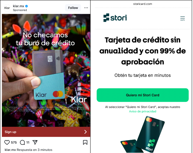 Source: Klar’s Instagram account and Stori’s website. Screenshots taken on June 13, 2025.